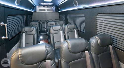 Our executive clients who choose the Executive Sprinter Van experience superior comfort in plush, reclining leather seating and deeply-tinted windows offer privacy. This executive van easily accommodates groups of 13 or less, and includes many additional modern amenities, including: Interior opera lighting along luxury walnut wooden accents Storage capacity for travel luggage Wi-Fi wireless Internet access Front-mounted LCD TV with DVD player In-dash CD player with surround sound stereo system Enhanced air conditioning for cool transportation Complimentary bottled water