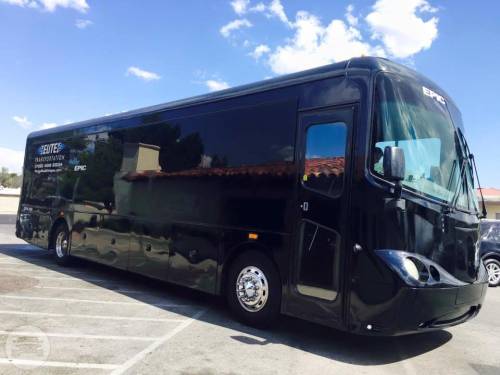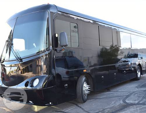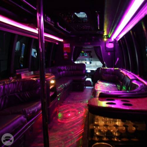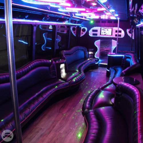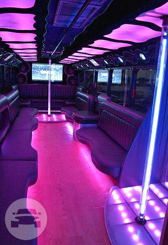 38 Passengers Luggage for 40 Black exterior Lounge style seating interior Illuminated rear Fiber optic lighting DVD PLAYER WITH WIRELESS BLUETOOTH CONNECTION 42'' FLAT SCREEN TV DANCE POLE