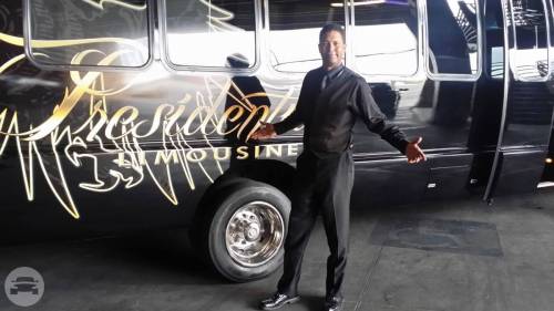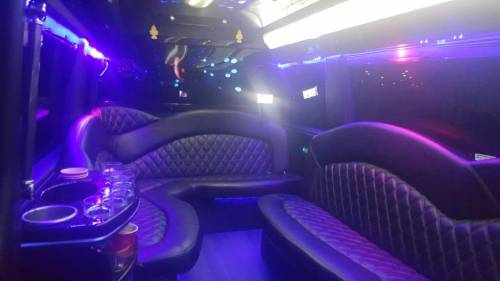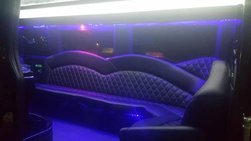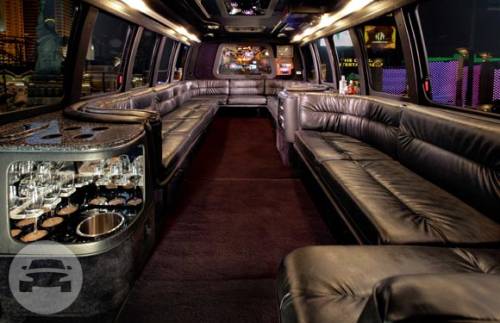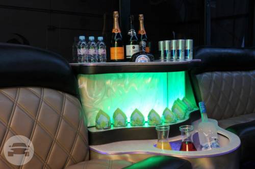 Within our fleet are limo-coaches sized for sixteen passengers, offering limousine seating, luxuries of a stretch limousine, but with far more space than a traditional limousine. These vehicles come equipped with leather seats, a wet bar, two TV screens, DVD, VHS, radio, neon lights, and a public announcement system(PA sys). Passengers can control their own air conditioning to travel at their preferred comfort level. These vehicles will hold approximately twenty pieces of luggage. Perfect for a group of friends to be transported from nightlife spot to nightlife spot.