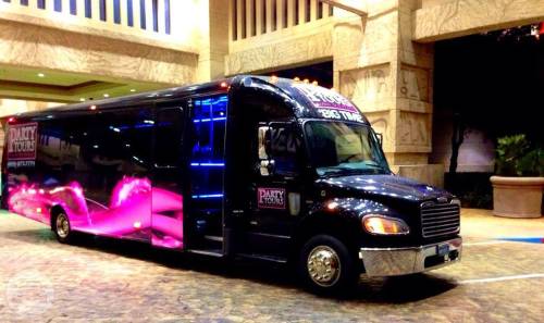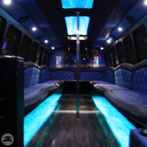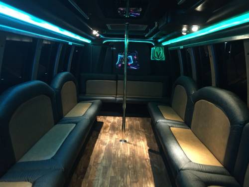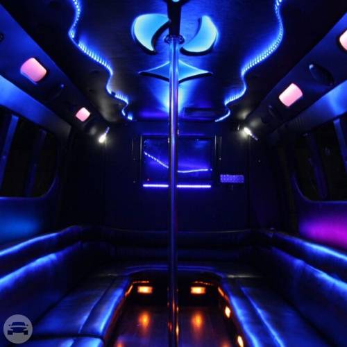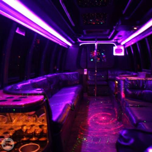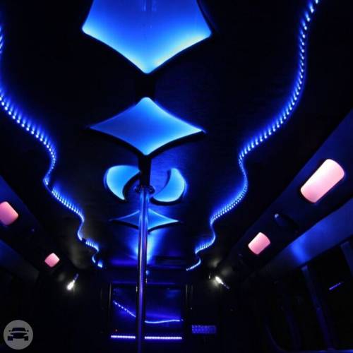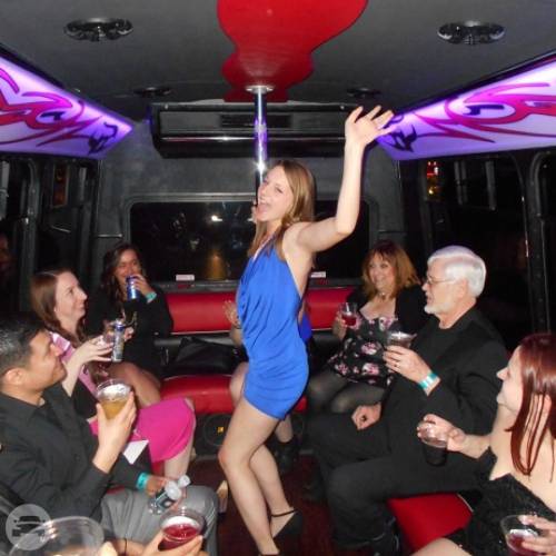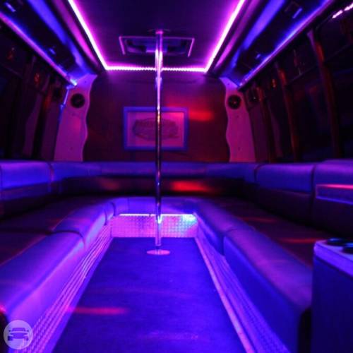 This is the perfect solutions for large parties, company parties, weddings and bachelor(ette) parties. Travel in comfort and luxury to your destinations. The Black VIP holds up to 28 which means most parties will have room to spare. The VIP Party Bus features lounge style seating. There is plenty of leg and head room for everyone. Enjoy amenities like a first class audio video system and a stripper pole. Listen to the music you want to hear on your ride to and from your party or event. Our bar is open with complimentary water bottles for everyone. Wedding parties will love how nice it is to travel, enter and exit the bus. You and your guests will look perfect and will enjoy the ride without worrying about wrinkling your dress or tux. This chauffeured Party Bus features fiber-optic laser lighting, premium surround sound system and a wet bar with complimentary bottled water. Your group is sure to be entertained from the time they step in until their drop off with LCD TV's and DVD player.