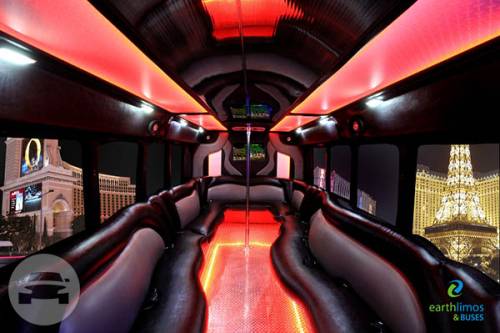 LAS VEGAS LUXURY PARTY BUS 24 PASSENGER LIMO COACH 24 passengers Luggage for 24 White exterior Lounge style seating interior White exterior Illuminated rear controls Fiber-optic lighting 12 Volt power source Fully-uniformed chauffeur Complimentary bottled water