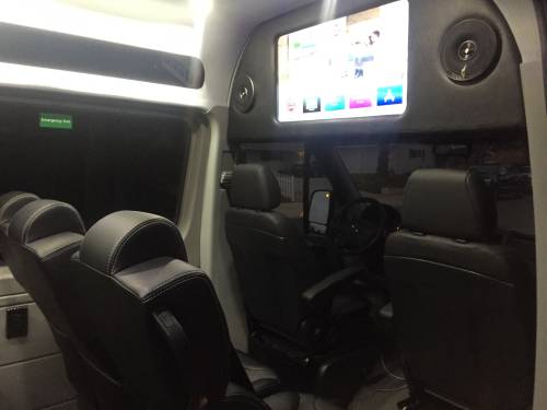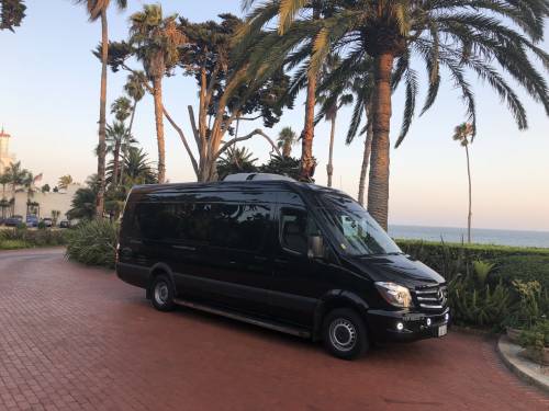 Our VIP Sprinter shuttle accommodates 14 passengers comfortably. This Mercedes luxury van is equipped with individual leather captain seats, 32inc TV, Apple tv, Iphone and Android phones mirroring and AUX input and a 30″ rear luggage space with and overhead light. These features make this vehicle perfect for corporate and event transportation!About Sprinter VansThe Sprinter Van, manufactured by Mercedes Benz, provides the style and luxury you expect from Mercedes. These vans feature supple leather seats, sleek black exteriors, and many extras that will make your trip comfortable and memorable!For more detail on our 14 Passenger VIP Sprinter shuttle, call us or get a quote online.