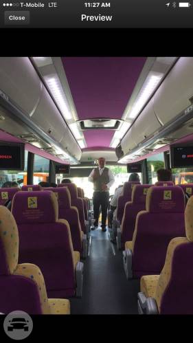 Our Mini Coaches are a great choice and comfortable for smaller groups. 34 seats with onboard restroom. Signature fleet of 4 – brand new, greener and maximum comfort! Plus, deluxe upgrades, including: Mint and hand towelette service. Highest safety standards with 3 point seat belts and professional driver. Complimentary Digital Signage Easy access with wide entrance and steps and kneeling feature Adjustable headrest and reclining chair with footrests, designer upholstery. Individual lighting and air conditioning controls, and air ride suspension for your comfort. Large and tinted windows for panoramic view. Audio / DVD video system with flat screens.