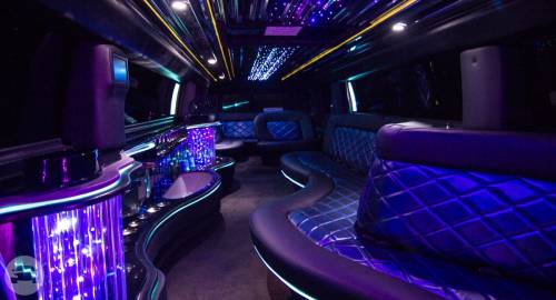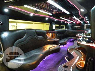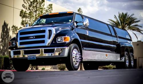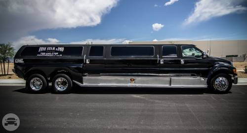 Five Star Limousine's Mammoth Limo is the ultimate in high class transportation for your party up to 30 people. Ideal for getting your large group to where you are going in luxury. The Mammoth Limo is the premier choice for your wedding party, bachelor or bachelorette party, airport pickup, prom, or keep your party going from your doorstep to the Las Vegas strip and back home or to your hotel without missing a single beat. As will all of our chauffeured vehicles this Mammoth Limo features fiber-optic laser lighting, premium surround sound system and a wet bar with complimentary bottled water. Your group is sure to be entertained from the time they step in until they drop off with LCD TV's and DVD player.