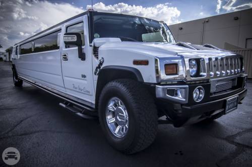 Make an entrance and turn heads in Five Star Limousine's 14 passenger Black Hummer. Your group will be picked up in premium style as they enjoy this elegant and smooth ride. Perfect for picking up your wedding party or corporate clients from the airport or their hotel. Want to party? Be a showstopper when your bachelor and bachelorette party arrives at the club, or at your prom. Book this Hummer for a holiday down on the Las Vegas strip and your party will never miss a beat. Like all of our chauffeured vehicles this stretch Hummer features fiber-optic laser lighting, premium surround sound system and a wet bar with complimentary bottled water. Your group is sure to be entertained from the time they step in until their drop off with LCD TV's and DVD player.