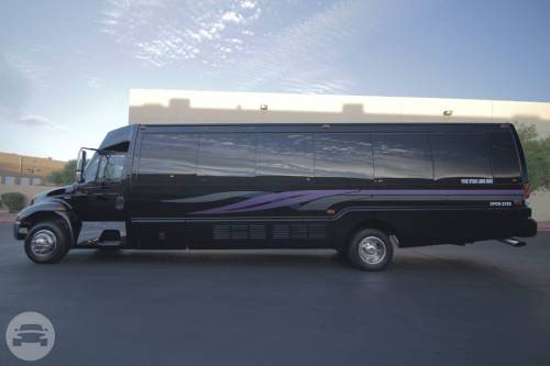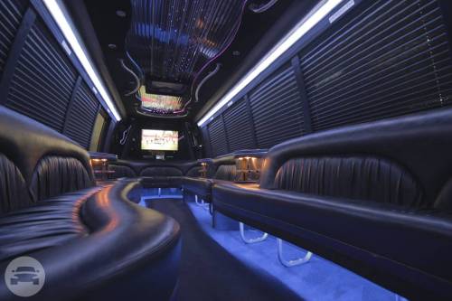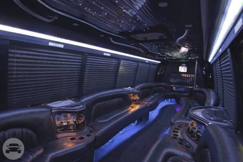 This is the perfect solutions for large parties, company parties, weddings and bachelor(ette) parties. Travel in comfort and luxury to your destinations. The Black VIP holds up to 28 which means most parties will have room to spare. The VIP Party Bus features lounge style seating. There is plenty of leg and head room for everyone. Enjoy amenities like a first class audio video system and a stripper pole. Listen to the music you want to hear on your ride to and from your party or event. Our bar is open with complimentary water bottles for everyone. Wedding parties will love how nice it is to travel, enter and exit the bus. You and your guests will look perfect and will enjoy the ride without worrying about wrinkling your dress or tux. This chauffeured Party Bus features fiber-optic laser lighting, premium surround sound system and a wet bar with complimentary bottled water. Your group is sure to be entertained from the time they step in until their drop off with LCD TV's and DVD player.