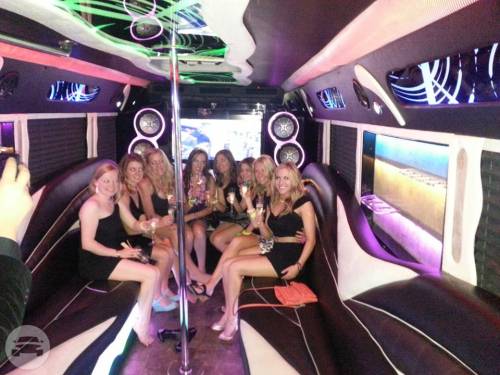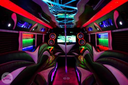 We have an awesome selection of Party Buses in Las Vegas! Our Fleet of of Party Buses seat anywhere from 1 – 34 passengers and have the newest interiors in town. Our Party Buses come equipped with Dance poles, Competition stereo systems, Flat screen TV’s and Color Change interior lighting.