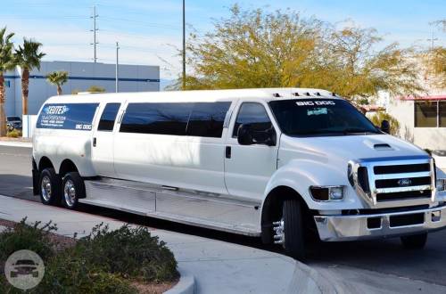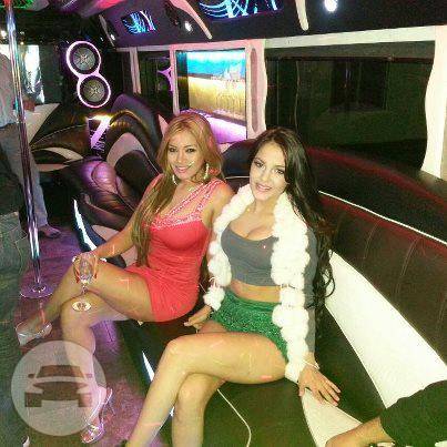 WHITE LIMO "BIG DOG" 24 PASSENGERS LUGGAGE CAPACITY DEPENDS ON HOW MANY PEOPLE DVD PLAYER WITH WIRELESS BLUETOOTH CONNECTION LED LIGHTING 42" FLAT TV 1 DANCE POLE