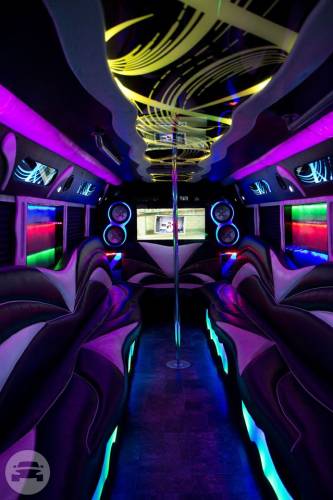 24 PASSENGERS LUGGAGE CAPACITY DEPENDS ON HOW MANY PEOPLE DVD PLAYER WITH WIRELESS BLUETOOTH CONNECTION LED LIGHTING 42" FLAT TV 1 DANCE POLE