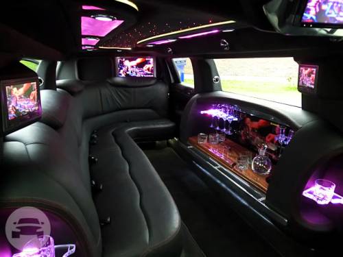 Accommodates up to 10 passengers without luggage, 6 passengers with luggage. Our limousines feature flat screen TV & DVD, CD sound system, ice bin, glasses and flutes and cabin partition.