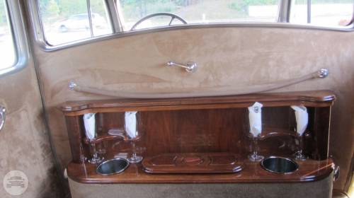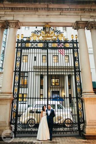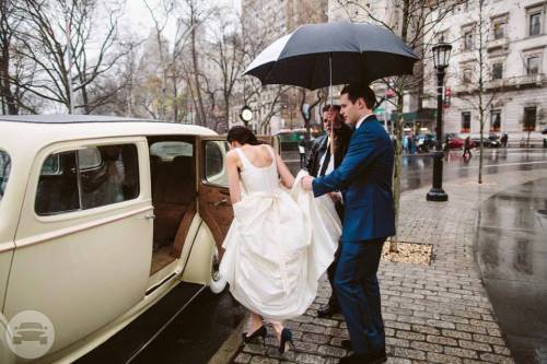 -Classic Chrysler, with a white exterior and an off white interior. -Comfortably seats 2-5 passengers. --Available for all occasions (hourly minimums vary). -A perfect vehicle for all brides on their special day!