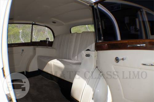 -Luxury white Rolls Royce, with an off white interior. -Comfortably seats 1-3 passengers. -2 pull down tables for the back seat passengers. -Available for all occasions (hourly minimums vary). -A perfect vehicle for all brides on their special day!