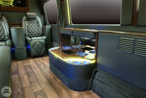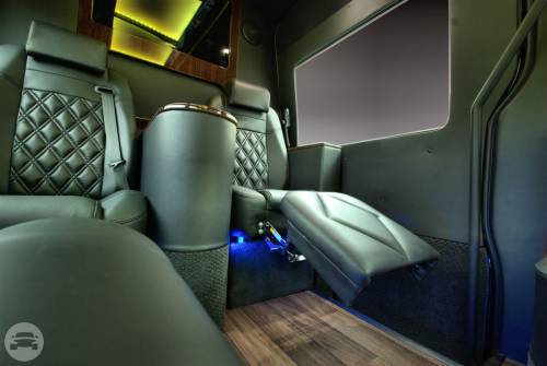 This Mercedes Sprinter has been custom built for the enjoyment of our VIP customers. This is a great alternative to a standard limousine and gives you room to walk around in total comfort. This vehicle embraces you in the lap of luxury. Has everything from Leg lifts and captains chairs to Satellite TV and WIFI. Try it out and you won’t want to ride any other way. Amenities: Captains chairs with leg lifts Bar two 32 in tvs Satellite TV WIFI DVD High End Stereo Bentley stitched seats RGB lighting Maybach ceiling Wood floors