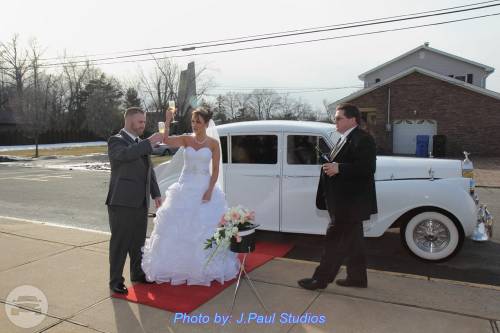 This is the ultimate in NJ wedding and prom limo luxury and style. This spotless classic Austin Princess will make every bride feel like a princess – and every prom couple feel extra special. The Austin Princess has a white exterior, parchman leather interior, factory tinted glass, lighted vanity mirrors, front & rear air conditioning and heat. Surround sound system with iPod hookup, DVD, CD, Sirius radio, wedding horns, custom white wall tires with beauty rings. Custom wheels, suicide doors for easy entry and most of all, the only vehilce of its kind with triple the leg room for passengers’ luxury and comfort – plenty of extra room for that beautiful wedding gown! Plus many more luxury amenities you will experience with this vintage Austin Princess NJ wedding limousine from Action Limousine Inc. on that very special wedding day!