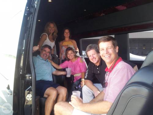 Capacity: 38 Passengers Our late model Executive Luxury Shuttle Buses are very popular for moving large groups wherever you need to go. They seat up to 38 passengers in style and comfort and include a premium sound system, “row style” seating, panoramic windows and many interior upgrades.