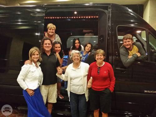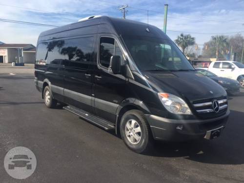 Capacity: 8 Passengers Our top-of-the-line Mercedes Sprinter Limo is available for all occasions including airport transfers, corporate charters, concerts and much more. The Sprinter VIP Limo can seat up to 8 passengers in luxurious comfort and includes a CD player, television and leather seating.