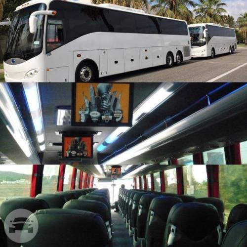 Capacity: 54 Passengers We offer all kinds of late-model Coach . Providing comfortable seating for up to 54 passengers, these Coaches allow you to stretch out comfortably and enjoy. the luxury executive Coash bus comes equipped with 3 flat screen TVs and privacy tinting, allowing you to forget about the world outside. we take pride in our selection of our buses, and our variety ensures that you will never be disappointed with your selection.