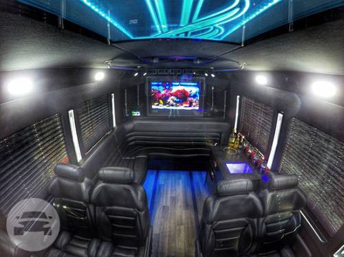 Charleston transportation service in this Mercedes Sprinter is not your typical Shuttle service this vehicle is known for. Better than any party bus in Charleston, transportation aboard the Executive Limo Bus is service you won’t forget. For a Charleston bachelorette party looking for that party bus feel with amenities of a full limousine service, this is your ride. The perfect Charleston limousine for those after roomy & elegant transportation service for a wedding day here in Charleston. Turn off the color lights, add cold bottled water, and you’ve got the perfect executive transportation service option. The Best Charleston Limo Transportation Amenities Comfortable service for up to 13-passengers Hardwood flooring Two (2) 42″ televisions Touch pad control radio with premium CD | DVD & Aux connection Four cell phone charging ports for use during transportation State of the art sound system with six speakers and multiple subwoofers Customer touch control panel for lighting, climate, and sound system Full length stainless steel mirrored ceiling with fiber optics Fiber optic bar area LED music activated lighting Full color led floor and ceiling lights Power operated privacy divider for private service Complimentary Wi-Fi by request Custom screen display options available