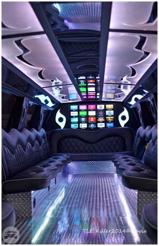 Passenger: 20 -22 Colors: Black or White Amenities: Flat Screen TV's, CD, DVD, MP3 Player, 4,000 Watts Premium Sound System Neon, Strobe and laser lights Sunroof VIP Room wet bars and much more...