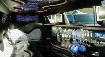 Passenger: 10 -12 Colors: White Amneties: (2) 15" Flat Screen T.V.s, CD, DVD, MP3 Player Chrome Wheels, 2 Wet Bars, Games, Finer Optic Lights, Ceiling Lights, Neon Lights, Glitter Mood Lights, Laser Lights and much more...