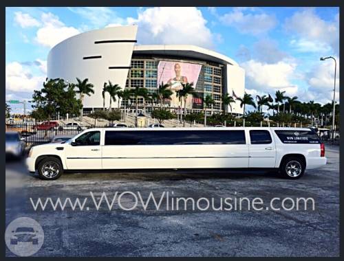 Wow Cadillac Escalade Limousine is Florida’s most luxurious and exotic limousine, typically chosen for weddings, galas and nights out on the town. However, this stunning Cadillac Escalade Limousine can be used for any event! The amenities are abundant in the Cadillac Escalade 18 Passenger Stretch Limo: TWO Fully Stacked Bars One at Front and Back of the Limo Multiple LCD TV Screens with DVD Players Ambient Neon Club Lighting System with Laser Light Show controlled by YOU Ipod/Iphone Audio Hookup into the Surround Sound System and much more .. Believe or not, that’s not all! The Escalade Stretch has more features that you just have to see yourself–no one has ever been disappointed! It’s shiny, pearl exterior pairs perfectly with the refined and well tailored white and gray leather seating. The seating capacity allows plenty of room for 16 to 18 passengers.