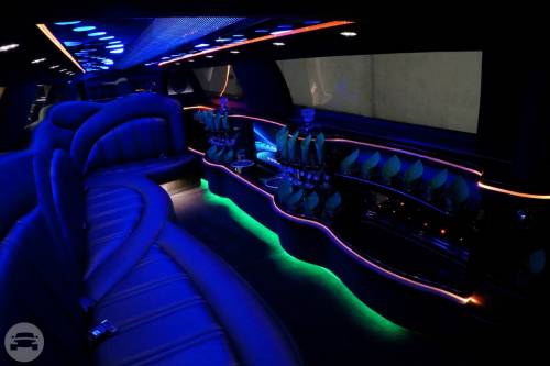 Features: 10 Passengers Colors: Black or White Amenities: 5th Door, Flat Screen TV in Bar CD, DVD, PM3 Player 3,500 Watt Premium Sound System Sunroof Luggage Room Wet Bars