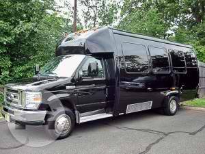 Our black luxury minibus features u-shaped seating. There is a cooler in the front of the vehicle, a flat screen TV, a DVD player and a connection for your iPod. Above the seats, there is ample storage compartments for carry-on luggage, laptops, purses, and presentation equipment. This vehicle can accommodate up to a total of 14 passengers with plenty of room for luggage in a seperate compartment.