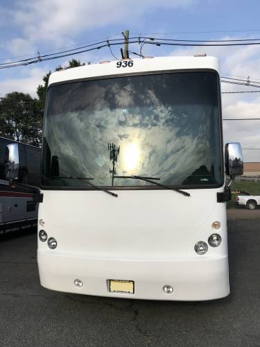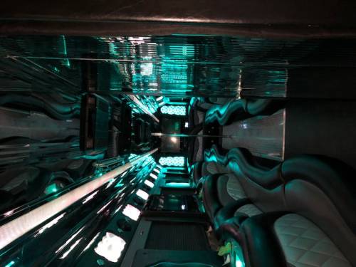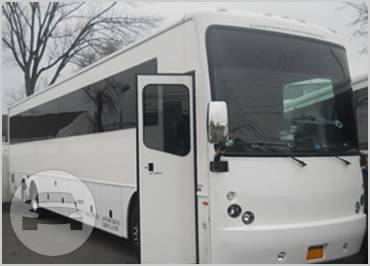 Limo Bus Plush Leather Couch Seating Complete Privacy (Tinted Windows/Shading) 8 disk Digital DJ up to 200 Watts 42″ Flat Screen TV With DVD and Surround Sound System Cellular Phones/Computer Outlets/3 Power Points 3 Bars, Wet Sink and Glassware Over Six Feet of Headroom