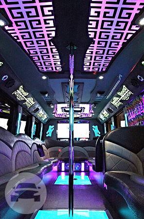 Number of Passenger: 1 up to 30 Fully Loaded. Limo Bus 25 Number of Passenger: 1 up to 25 Our Chicago Party Buses are the best and hottest! You will turn heads as soon as you and your guests pull up to your destination. VIP Limousine Party Buses are the ultimate club on wheels for any event. Every party bus has the best surround sound system. Our Party buses seat from 25 and up to 40 passengers, depending on the bus you choose. Every party bus features LCD Flat Screens, LED lights, Laser & Strobe Lights. Party buses are perfect for bridal parties or Bachelor(ette) parties in our beautiful windy city. As of 2016 all stripper poles are removed unless installation of poles agreed upon at reservation time. Our Chicago Party Bus fleet possesses only the highest level of technology. We strive to be different and to rise among the rest. This 32 Passenger Chicago Party Bus has 2 disco floors, 2 stripper poles and plenty of room. You'll be bumping to our awesome sound system and you have plenty of room to dance with your friends! Also a great Chicago Blackhawks limo or support any Chicago team! Rent one of these hourly for your concert, and you can be rest assured your night will go smoothly. We will pick you and your friends up and take you to your concert while you enjoy cocktails. Leave all your stuff on the Chicago Party bus in the care of your driver. Then your chauffeur will be patiently waiting for you and your friends with your party bus rental ready to go. This party bus boasts wave leather seating, beautiful tiled floors, flat screen TVs, and more!