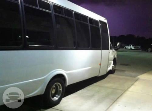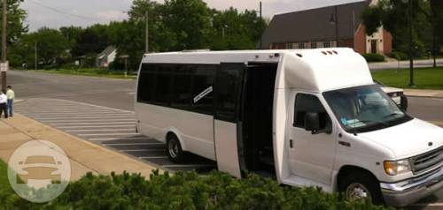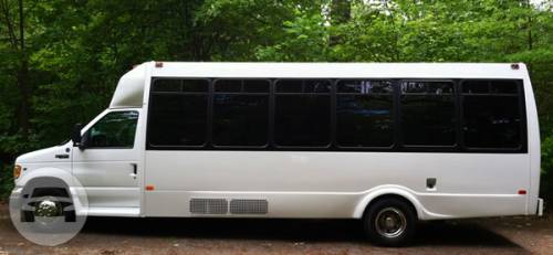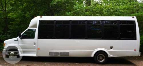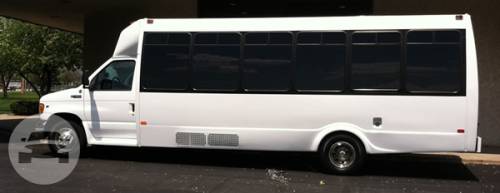 Party Bus All white E-450 Party Bus with black leather wrap around seating available for rent in Northwest Indiana. We ordered this party bus directly from the premier party bus builder in California. Features: This vehicle is equiped with 3 flat screen monitors, dvd player, cd player, and it is ipod / mp3 player ready. This limousine has 2 large built in coolers, full color wash changing ceiling, and laser lights.
