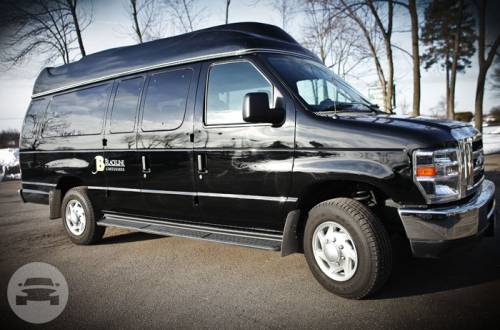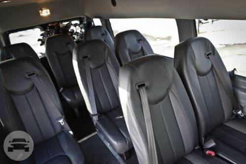 The executive coach van has black leather individual coach seats, raised roof for added height inside center-aisle, step assisted entry and exit. Over 60 cubic feet of luggage space (Great for golf outings, executive travel, and airport shuttle)