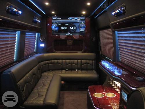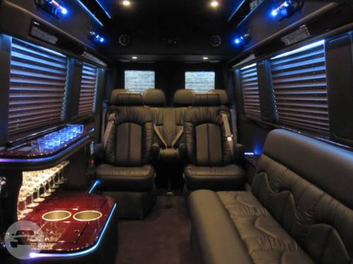 We take notable pride in keeping our plush interiors impeccably clean and our vehicles meticulously maintained. Maximum interior space, exceptional comfort and superior luggage capacity are what passengers can expect from our vans. A more affordable method of transportation than traditional limousines, vans can transport as many as six passengers and an extensive cargo load. Our vans are excellent for airport transfers, group transfers, etc. Our Vans provides an unforgettable atmosphere and an unsurpassable ride for passengers. Its exquisite features include soft, black leather couch seating, three black marble wet-bars, a mirrored stargazer ceiling rear panel and opera lighting. Best for airport transfers, bachelor / bachelorette, corporate, conventions, group transfers.