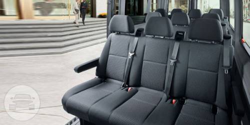 Capacity: 17 Passenger Luggage: 12 Late-model Mercedes-Benz Sprinter Custom Captain's Chair seating Executive tinted windows Ample headroom and legroom Ideal for dinearounds and VIP services