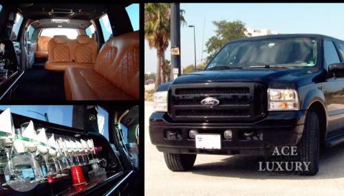 This car can accomodate 16 passengers in style and comfort. Each limousine is equipped with flat Screen TVs, AM/FM/CD, DVD and marble floor.