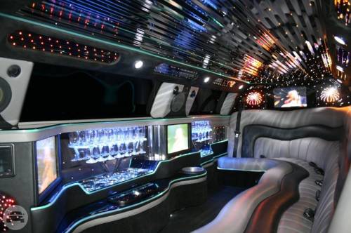 These cars come in BLACK and WHITE. They can accommodate 14 passengers in style and comfort. Each limousine is equipped with flat Screen TVs, AM/FM/CD, DVD, mirrors, fiber optic interior and a complete refreshment center.