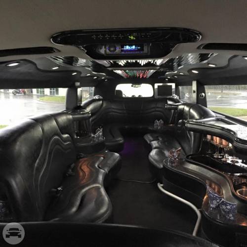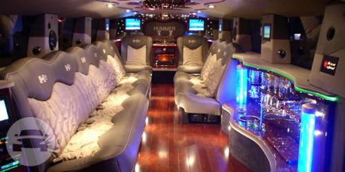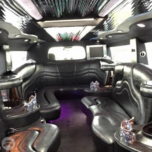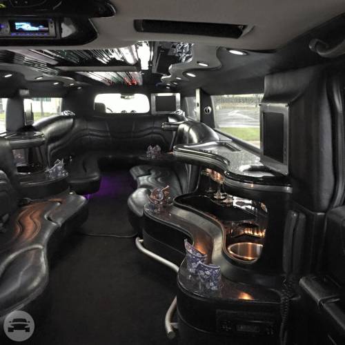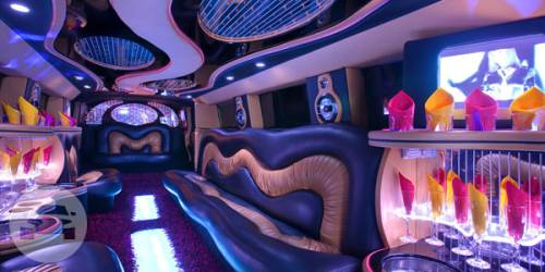 H2 Hummer Limousines. The Hummer is one of those limo for when nothing else will do but the exotic, you sure are to turn heads and become the center of attention. This exotic hummer limo will get you there and back while accentuating your personality as a person who deserve VIP treatment. With a fully complimentary and a state of the art entertainment system that includes multiple flat panel TV screens and DVD player, you are sure to get the party started long before you reach your destination. Flat-screen color TV’s AM/FM/CD/DVD player, Surround system Laser and strobe lights Fiber optic lighting Starlight mirrored ceiling Leather Seating Tinted Windows This Vehicle will comfortably seat 18-20 passengers. As you relax and enjoy the professional experience of our chauffeured service, you can watch TV, listen to the upgraded SONY audio system , and enjoy a movie with one of the refreshments from the bar.