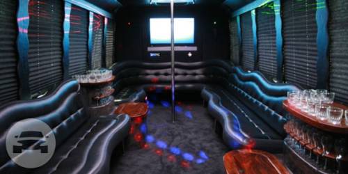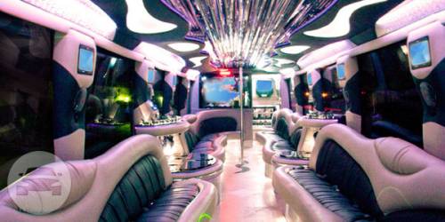 [ Up to 17 to 26 passengers] Exceptional for large groups from conventions or sporting events or just a night out on the town. Our Limo Bus features phones, mirrored ceiling, a bar, State of the art CD surround sound, 52 inch TV screen and a DVD player. The Ultimate Party Bus!