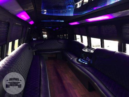 SEATING CAPACITY Comfortable: 20 Passengers | Maximum: 22 passengers This Limo Party Bus is the ultimate in luxury and convenience. With seating for up to 24 passengers it's perfect for corporate transfer, anniversary or an airport transfer with luggage. This Mini Bus comfortable seat about 20 but it will fit 25 maximum passengers. This elegant Limo Bus is at your service for any occasion, from weddings to proms to sporting events to nights out, or simply for a more memorable ride to one of our Area Airports. Prom packages are based on garage to garage timeframe. Each one of our limousine buses are equipped with - LCD Screens CD and DVD players Tinted Glasses Air Conditioning Full Coach Back Full Body Kits