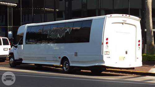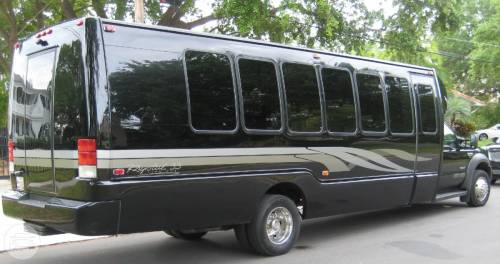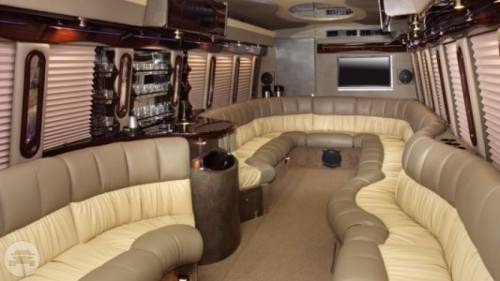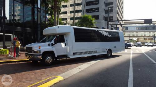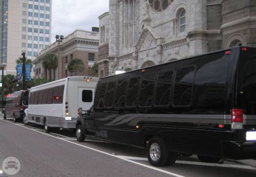 This custom-made limo coach is the ultimate party bus. It is a perfect choice to take your occasion to a whole new level. With top of line interior features and enough headroom for guests to move freely, this is definitely a party on wheels. Perfect for large corporate parties, large wedding groups, bachelor and bachelorette parties. Be wowed with this super-sized party bus. At a Glance: Up to 30 Up to 24 Servicing Tampa, St. Pete, Clearwater, Orlando and Sarasota. Features Fiberoptics TV/CD/DVD Surround sound Premium sound system Perimeter seating Water, ice, glassware