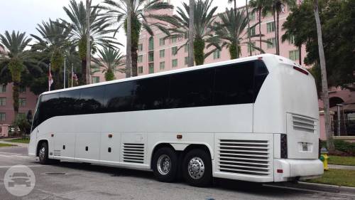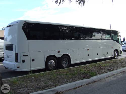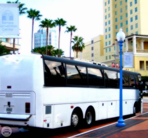 This coach is the largest size vehicle available for transporting numerous passengers. It is ideal for long distance trips as it is equipped with a restroom. This charter bus is a perfect option for weddings with a large number of guests to transport, corporate events and out of town charters. At a Glance: Up to 55 Up to 48 Servicing Tampa, St. Pete, Clearwater, Orlando and Sarasota. Features AM/FD/CD Plenty of luggage space Restroom