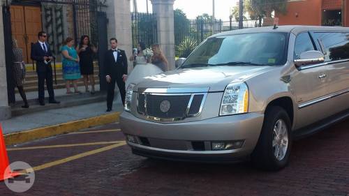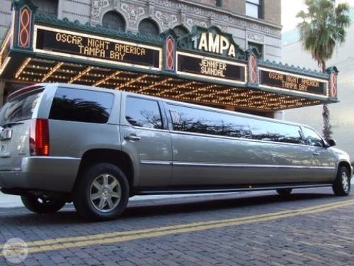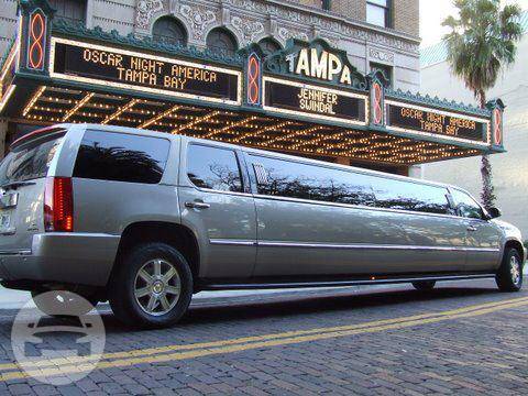 Arrive at your destination in style. The Cadillac Escalade Limousine is the perfect way to add sparkle to your event with its eye catching and gorgeous design. At a Glance: Up to 18 Up to 16 Servicing Tampa, St. Pete, Clearwater, Orlando and Sarasota. Features Surround Sound System Fiberoptic ceiling CD/DVD Flat screen TV's Water, ice, glassware Leather seating