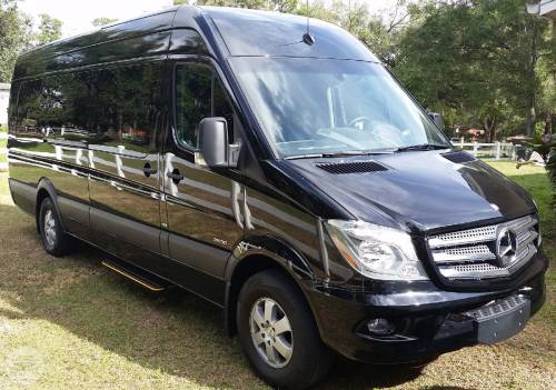 The Mercedes executive van is a perfect upgrade from a traditional passenger van. There's no comparison to the class of a Mercedes vehicle. With an extended roof, passengers have plenty of headroom making it easier to move around. Perfect for transporting medium-sized groups to and from the airport, corporate events or a night on the town. At a Glance: Up to 14 Up to 10 Servicing Tampa, St. Pete, Clearwater, Orlando and Sarasota. Features AM/FD/CD Plenty of luggage space