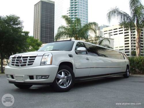 Arrive at your destination in style. The Cadillac Escalade Limousine is the perfect way to add sparkle to your event with its eye catching and gorgeous design. At a Glance: Up to 18 Up to 16 Servicing Tampa, St. Pete, Clearwater, Orlando and Sarasota. Features Surround Sound System Fiberoptic ceiling CD/DVD Flat screen TV's Water, ice, glassware Leather seating - See more at: http://skyline-limo.com/Vehicles/Cadillac-Escalade-Limousine-Super-Stretch#sthash.jAqKNJcw.dpuf