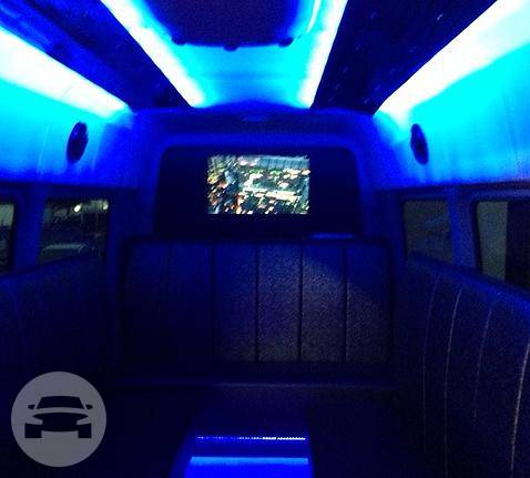 Passengers: 14 Vehicle Color: Black Looking for a vehicle built for entertainment while offering a corporate style environment, then look no further than Dallas Limos Sprinter Executive Limousine Van. Comfortable seating for up to 14 passengers and features a large interior layout, wet bar, ultra-quiet interior and a large interior TV for your viewing pleasure. Large Rear Interior TV Fully Stocked Wet Bar Ultra Quiet Interior Spacious Interior Layout Multi-Color Fiber Optic Mirrored Ceiling Lighted Interior Assist Handles Rear Climate Control Station Leather Perimeter Bench Seating AM/FM/CD/DVD Entertainment System