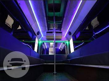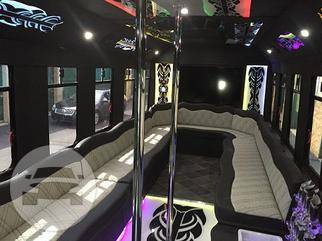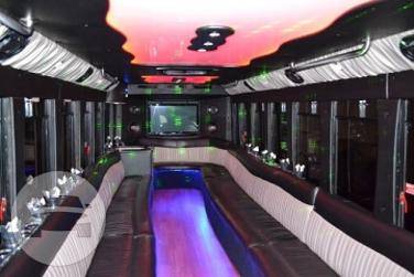 • 25 Passenger Seating • Granite Bar • 42" Plama TV / DVD • 2-Tone Color Leather Interior • Disco Ceiling • Hardwood Floor • Premium Sound System iPod Hookup • Laser Show