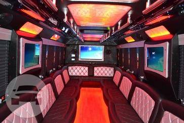 • 34 Passengers • 4 Plasma TVs • iPod / CD / DVD / MP3 / Bluetooth • Full Bar & Ice Chest • Premium Sound • Disco / Stainless Steel Ceilings • Hardwood Floors
