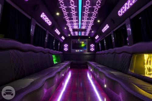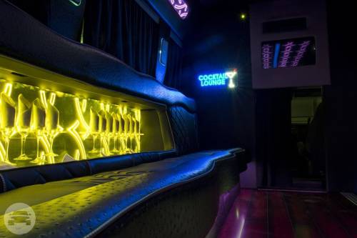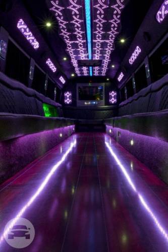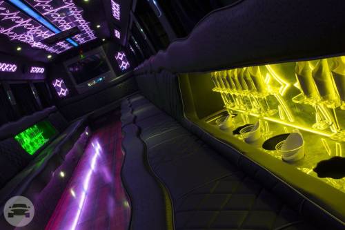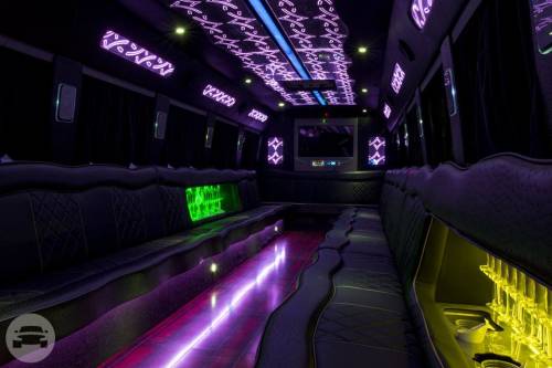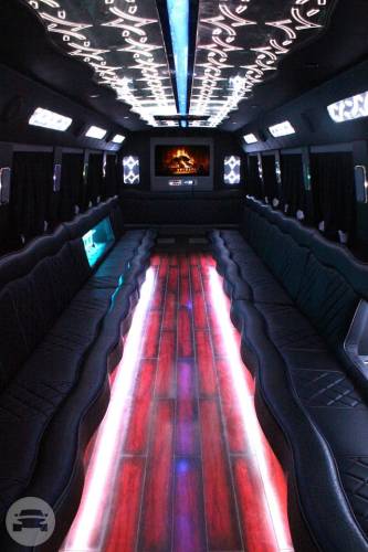 *2 flat Screen Plasma TV’s and DVD *Premium sound system with bluetooth capability * Color Change LED Lighting *Limousine Style wrap around Seating *Rear luggage storage