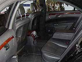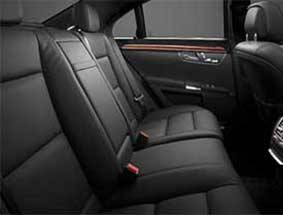 Our black Mercedes S550 seats up to 3 passengers who want to experience outstanding ride comfort and relaxation in ultra plush black leather seats and impressive looking climate-controlled cabin. It has dark tinted windows, a Panorama sunroof, iPod/MP3 hookup, CD/DVD player, satellite radio system with surround sound.