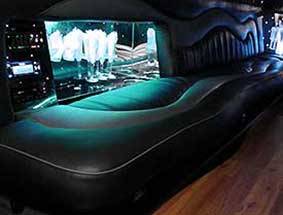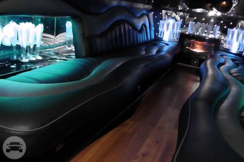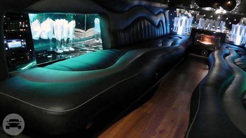 This 40′ double-axle Cadillac limousine has “butterfly” doors, 22″ chrome wheels, (2) 17″ TVs, (1) 38″ TV, (4) bars, VIP section, fish tank, fireplace, (8) disco light settings, DVD player, CD player, iPod hookup, 3,800 watt sound system with (10) speakers and (2) subwoofers.