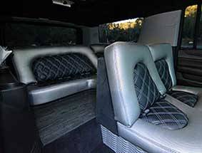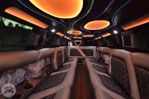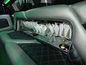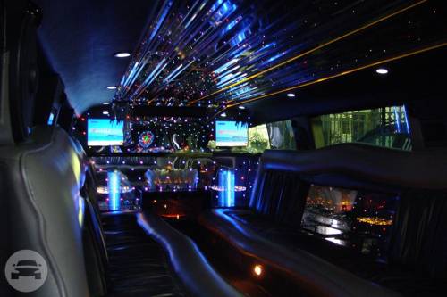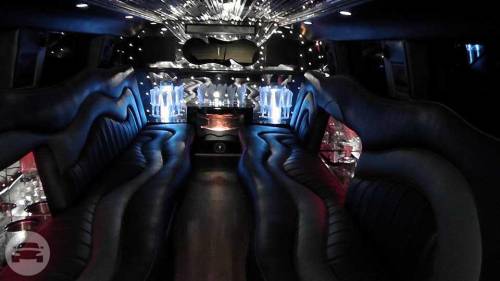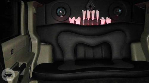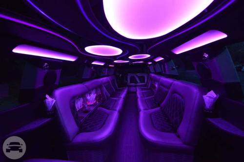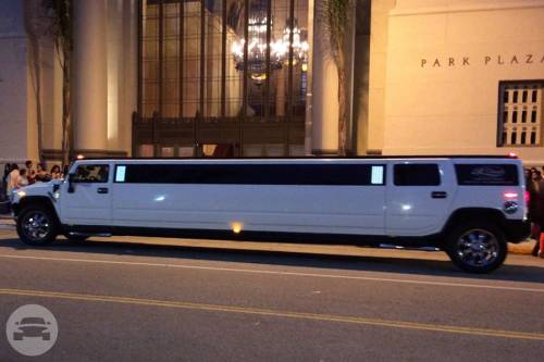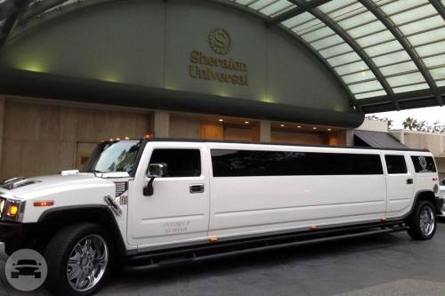 Our Hummer limousine is very popular to rent for a prom or major party event in the Greater Los Angeles Area, like a bachelor party, bachelorette party, birthday party, quinceañera or sports game. We’ve recently reupholstered our Hummer limousine with new plush black and gray leather seats, and a new wooden floor. Our 37′ Hummer limousine sports 22″ DUB chrome wheels, and accommodates up to 20 passengers in luxurious comfort. There is a private partition to separate you from the limo driver so you can let loose in this beast all day and night. We respect and honor your right to privacy. Complimentary champagne, whiskey, vodka (over 21 years years old), soft drinks and bottled water is provided. You can bring your own beverages too. This gorgeous white Hummer limousine rental has (2) 17″ TVs, (4) 7″ TVs, (3) bars, disco lights, DVD/CD player, iPod hookup, 3,200 watt sound system with (8) speakers & (1) subwoofer.